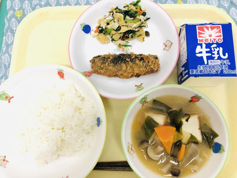 ※大町小のわんぱく農園で採れた「べにあずま」というサツマイモをみそ汁に入れました。みんなで育ててたサツマイモを味わうことが出来ましたね!今年、収穫できた喜びを来年へつなぎ、また、畝づくりからがんばりましょう⭐︎