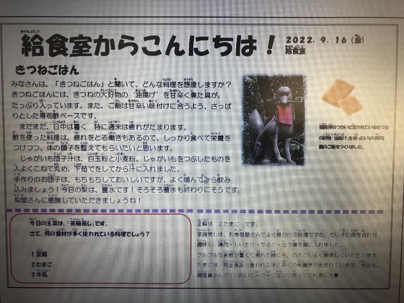 2022年9月の記事一覧 2022年9月 全ての記事 アーカイブ 2025年12月 (33) 2025年11月 (2) 2025年10月 (21) 2025年9月 (24) 2025年8月 (0) 2025年7月 (7) 2025年6月 (28) 2025年5月 (9) 2025年4月 (11) 2025年3月 (10) 2025年2月 (18) 2025年1月 (17) 2024年12月 (14) 2024年11月 (25) 2024年10月 (18) 2024年9月 (16) 2024年8月 (0) 2024年7月 (16) 2024年6月 (16) 2024年5月 (21) 2024年4月 (63) 2024年3月 (8) 2024年2月 (0) 2024年1月 (16) 2023年12月 (12) 2023年11月 (0) 2023年10月 (18) 2023年9月 (12) 2023年8月 (0) 2023年7月 (39) 2023年6月 (10) 2023年5月 (11) 2023年4月 (20) 2023年3月 (0) 2023年2月 (20) 2023年1月 (17) 2022年12月 (6) 2022年11月 (17) 2022年10月 (26) 2022年9月 (11) 2022年8月 (0) 2022年7月 (21) 2022年6月 (13) 2022年5月 (30) 5件 1件 5件 10件 20件 50件 100件 9月16日 投稿日時 : 2022/09/19 大町小学校管理者 きつねごはん 茶碗蒸し じゃがいもだんご汁 大町の梨(豊水) 9月15日 投稿日時 : 2022/09/19 大町小学校管理者 焼き肉丼(ごはん) 焼き肉丼(具) ゴーヤいりチップス もずくスープ 9月14日 投稿日時 : 2022/09/19 大町小学校管理者 スパゲッティナポリタン 豆入りサラダ なしのしっとりマフィン 9月12日 投稿日時 : 2022/09/19 大町小学校管理者 ごはん チーズインハンバーグ アーモンドサラダ オニオンスープ 9月11日 投稿日時 : 2022/09/19 大町小学校管理者 さんまのひつまぶしご飯 ごまみそあえ ゆばいりすまし汁 きなこ白玉 123 »