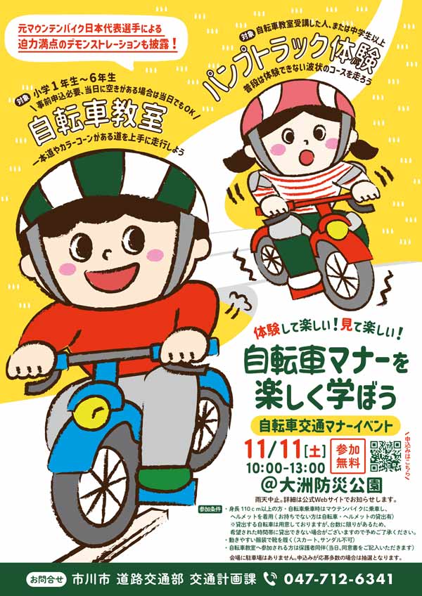 自転車による交通事故を減らすため、安全啓発と運転マナー向上を目的に、子どもたちを中心に、体験して楽しい・見ても楽しいイベントを開催いたします。