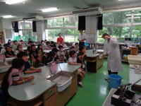 高学年は水圧の実験を見ました。夏休み中に科学工夫作品に取り組んでいもらえると嬉しいです。
