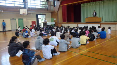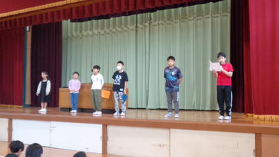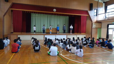 今日は開校記念日でした。そんな中、前期終業式を迎え、前期に頑張ったことを1年生から6年生までが発表、そのあと、後期に頑張りたいことを別の1年生から6年生までが発表しました。