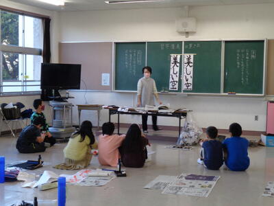 書き初め教室 3,4年生 投稿日時 : 2022/12/12 大町小学校管理者 書道の先生の亀山先生からご指導いただき、書き初めの練習に取り組みました。 3年生は「友だち」4年生は「美しい空」と書きます。 亀山先生にお手本を見せていただき、その素晴らしさに感動の拍手が起こりました。 いつもよりも大きな筆で、大きな紙に書くのは緊張しますね。 3年生は初めての経験ですので、より慎重に、4年生は昨年経験していますので、少しの余裕を感じました。