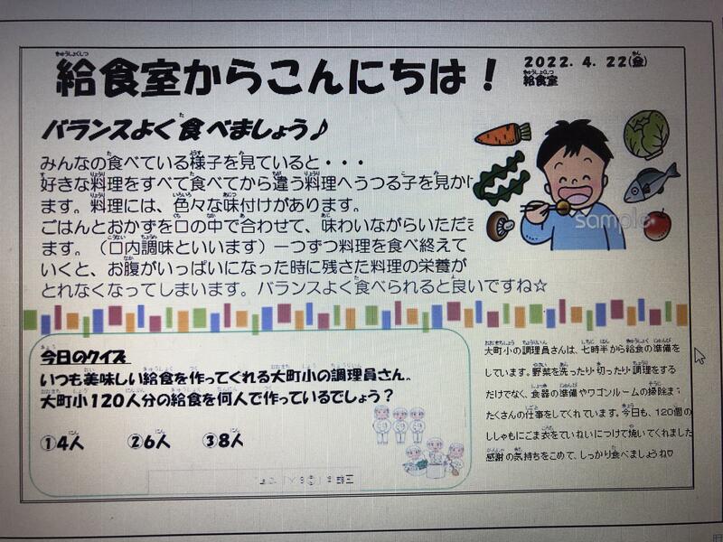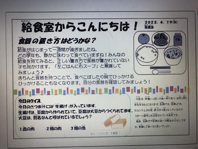2022年5月の記事一覧 2022年5月 全ての記事 アーカイブ 2025年12月 (33) 2025年11月 (2) 2025年10月 (21) 2025年9月 (24) 2025年8月 (0) 2025年7月 (7) 2025年6月 (28) 2025年5月 (9) 2025年4月 (11) 2025年3月 (10) 2025年2月 (18) 2025年1月 (17) 2024年12月 (14) 2024年11月 (25) 2024年10月 (18) 2024年9月 (16) 2024年8月 (0) 2024年7月 (16) 2024年6月 (16) 2024年5月 (21) 2024年4月 (63) 2024年3月 (8) 2024年2月 (0) 2024年1月 (16) 2023年12月 (12) 2023年11月 (0) 2023年10月 (18) 2023年9月 (12) 2023年8月 (0) 2023年7月 (39) 2023年6月 (10) 2023年5月 (11) 2023年4月 (20) 2023年3月 (0) 2023年2月 (20) 2023年1月 (17) 2022年12月 (6) 2022年11月 (17) 2022年10月 (26) 2022年9月 (11) 2022年8月 (0) 2022年7月 (21) 2022年6月 (13) 2022年5月 (30) 5件 1件 5件 10件 20件 50件 100件 4月22日 投稿日時 : 2022/05/01 大町小学校管理者 ごはん ししゃものごま焼き 塩味ナムル ジャージャン豆腐 4月21日 投稿日時 : 2022/05/01 大町小学校管理者 たけのこご飯 豆腐の真砂揚げ ツナとキャベツのあえもの じゃがいもとワカメのみそ汁 4月20日 投稿日時 : 2022/05/01 大町小学校管理者 セサミトースト パークビーンズ アーモンドサラダ 4月19日 投稿日時 : 2022/05/01 大町小学校管理者 発芽玄米ごはん さばのピリ辛焼き 切干大根のにもの さつまじる 4月18日 投稿日時 : 2022/05/01 大町小学校管理者 おからどん(ごはん) おからどん(ぐ) 鶏団子汁 せとかオレンジ « 123456 »