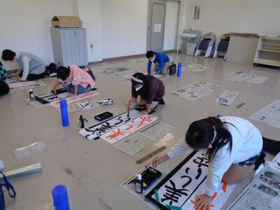 いつもよりも大きな筆で、大きな紙に書くのは緊張しますね。