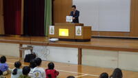 サンタ帽子の校長先生からは、お金の歴史と価値について話がありました。