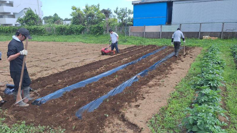 皆さんで150枚ほど袋をかけ、汗をかきながら頑張っていました。