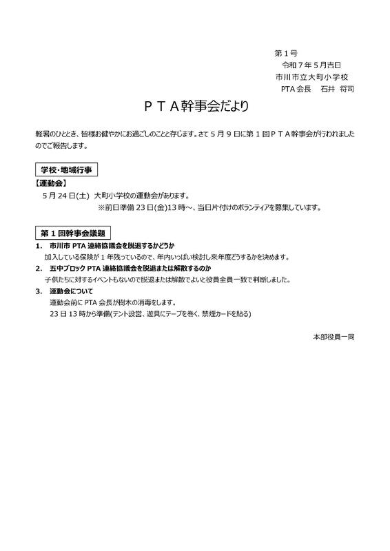 いつもPTA活動にご協力いただき、ありがとうございます。