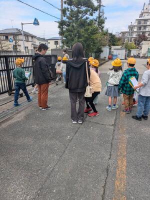 11月12日、2年生の校外活動である街探検の交通指導と見守りを保護者ボランティアにておこないました。