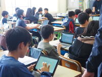 4月27日(日)の千葉版に掲載された「室内ドローンを開発した千葉市の会社」に関する記事をもとに授業が始まりました。