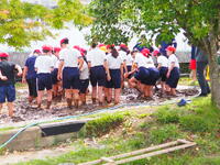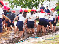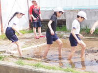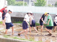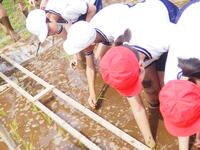 5月29日、5年生が大野小の田んぼにもち米の苗を植えました。