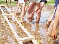子どもたちが一生懸命植えた苗を守るべく、みずがき隊の皆さんが、この日の午後、防鳥ネットを張ってくださいました。