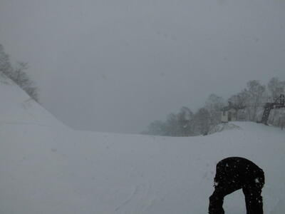 ゲレンデは吹雪です。リフトも一台しか動いていません!!