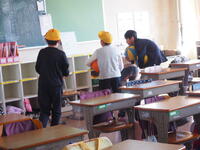 運動委委員会、体育倉庫の掃除や各学級の運動用具の確認。