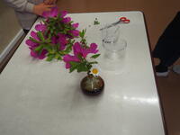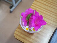 5月1日、校長室の一輪挿しに花を!と思い、色鮮やかなつつじとノースポールを拝借・・・。