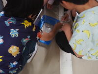 4年生の子がアレンジメントを、それを真似て1年生の子もチャレンジ!