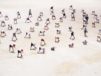 5年生、「構えっ!」のポーズ、「腰を低くっ!」