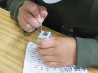 5月7日、6年生、書写の時間に篆刻にチャレンジ!