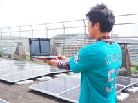 屋上からの風景を見せて、マンションと梨畑が多いと説明。