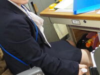 素早く机の下にもぐって、机の脚をしっかりと押させていました。