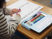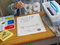 1年生、名前を書く練習をしています。姿勢、鉛筆の持ち方についてもみんなで学習しました。