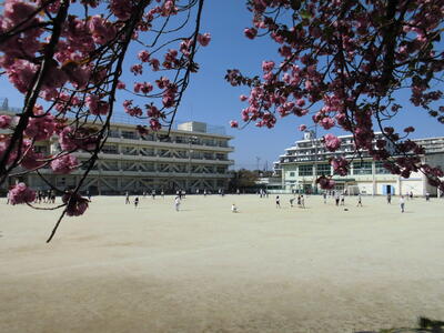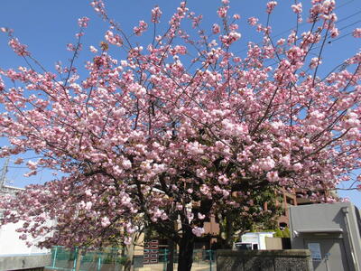 八重桜が満開です。大野小学校の校章は八重桜です。知ってましたか?