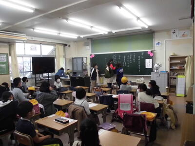 そして、新しい担任の先生のもと、6年生が入学式の準備をしました。