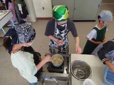 昨日4月21日から、5年生はじめての家庭科調理実習がおこなわれており、保護者ボランティアからは各クラス3,4名がお手伝いに入っています。