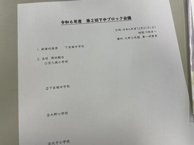12月21日、下貝塚中ブロック4校のPTA会長/副会長が集まる定例会議に、会長と副会長1名で参加しました。