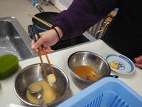 出来上がったら、栄養士や担任の先生に食べてもらい評価を
