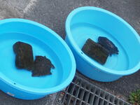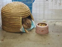 タンポポの葉やチュールなど、えさをたっぷりと食べ、涼しい玄関の中でのんびりと過ごしています。