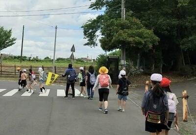 90名を超える児童が安全に移動できるのも、保護者の皆さんのご協力のおかげであります。暑い中の引率、ありがとうございました。