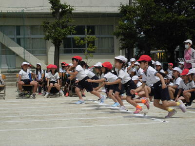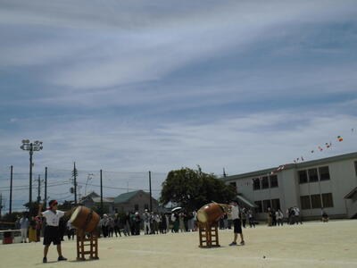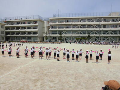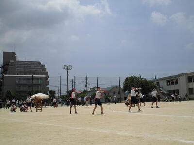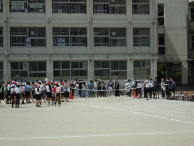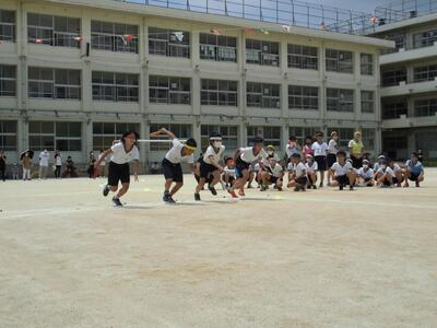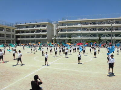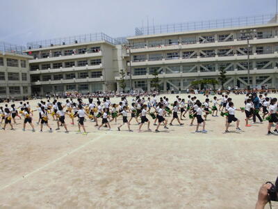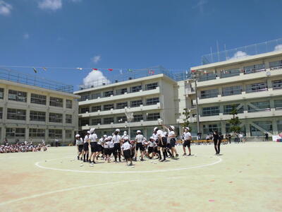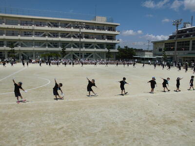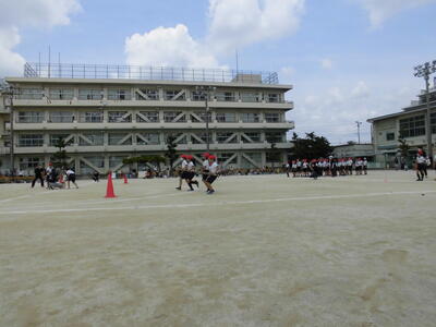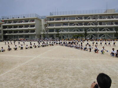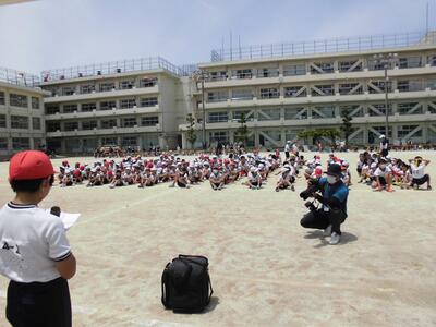 梅雨の晴れ間の子どもたちを本校3階より撮影しました。