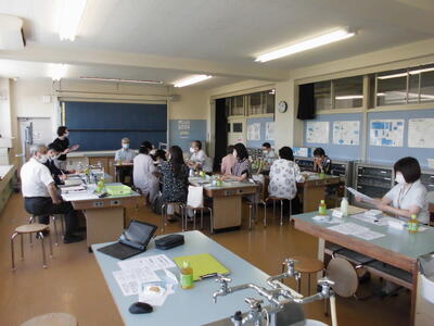 学校運営協議会はエアコンが効く、理科室で行いました。