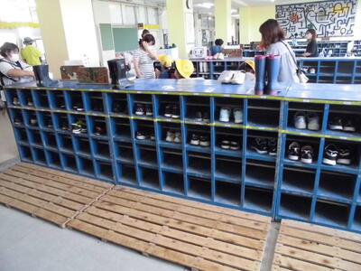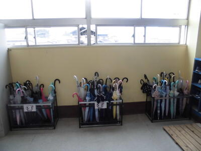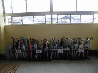 以前、「引き渡し訓練 1年生」9/5の記事で5年生の傘立てと靴箱がきれいにそろっていることを紹介しました。