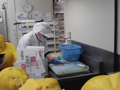 野菜や果物を切る部屋です!事務室や、休憩室も見学できました!