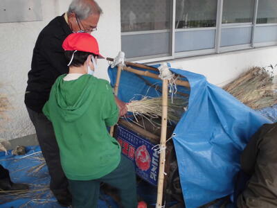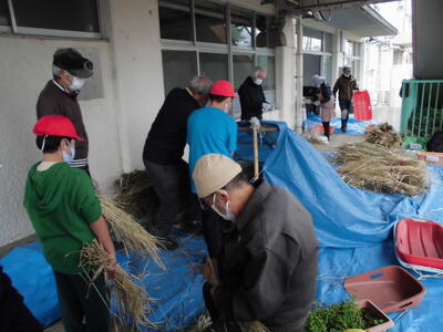 5年生が自分たちで育てた稲の脱穀を行いました。
