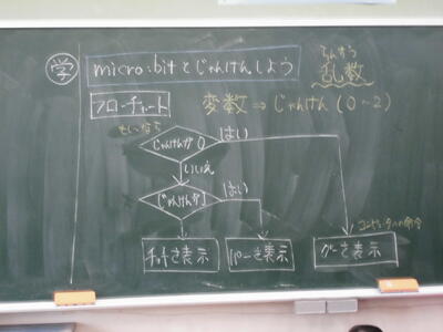 コンピューターにプログラミングを行い、じゃんけん対決をしています。