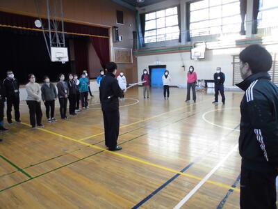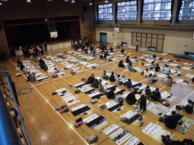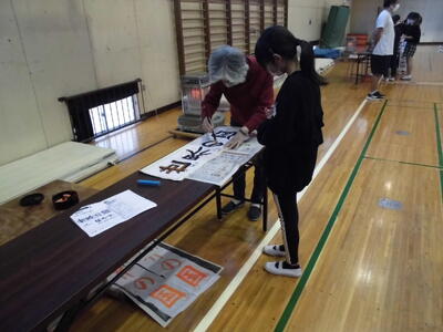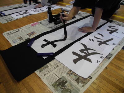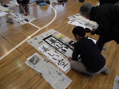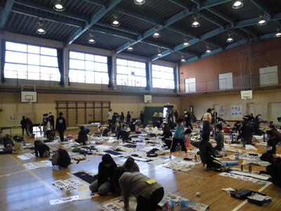 12月5日(月)に体育館で6年生と4年生を対象に書初め練習会が開かれました。