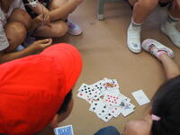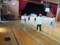 校庭でおにごっこ、体育館でバスケットやドッジボール、教室ではトランプなどのカードゲームを楽しんでいました。