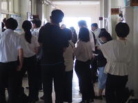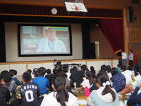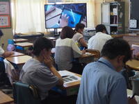 教室で参観できない先生方に、オンラインの良さを生かし別室に生中継を。