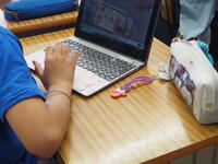 子どもたちの学習を見守っていました。