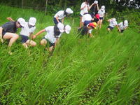 7月18日(木)5年生がミニ自然園の田んぼの草取りを行いました。