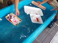 水に浮かべて、風を送って・・・。