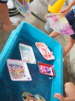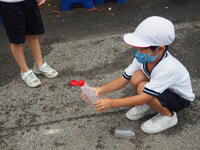 プラスチック容器を使って水鉄砲も。