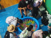 くじ引き、金魚すくい、ボッチャ、ストラックアウト、バスケットボール・・・と、体験コーナーもいっぱい。