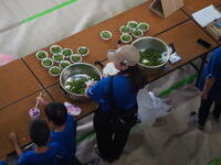 3学級がリレー方式で、2時間かけて作業を行いました。