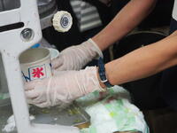 市政90周年記念缶バッジ、全校児童分550個をな・な・なんと、たった1時間で作ってしましました。