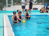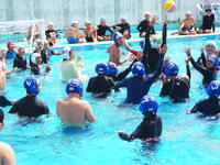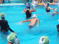 いよいよ、子どもたちも水球体験を。