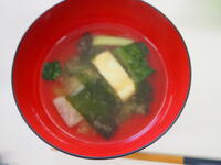 みそ汁やあえ物、サツマイモの茶巾など、簡単に手早くできるメニューを作りました。