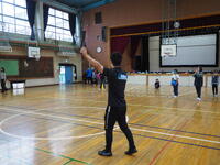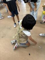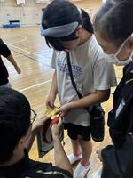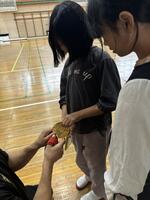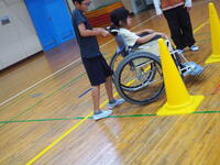 その後、車いすラグビーの選手とオリジナルルールのリレーをしました。
